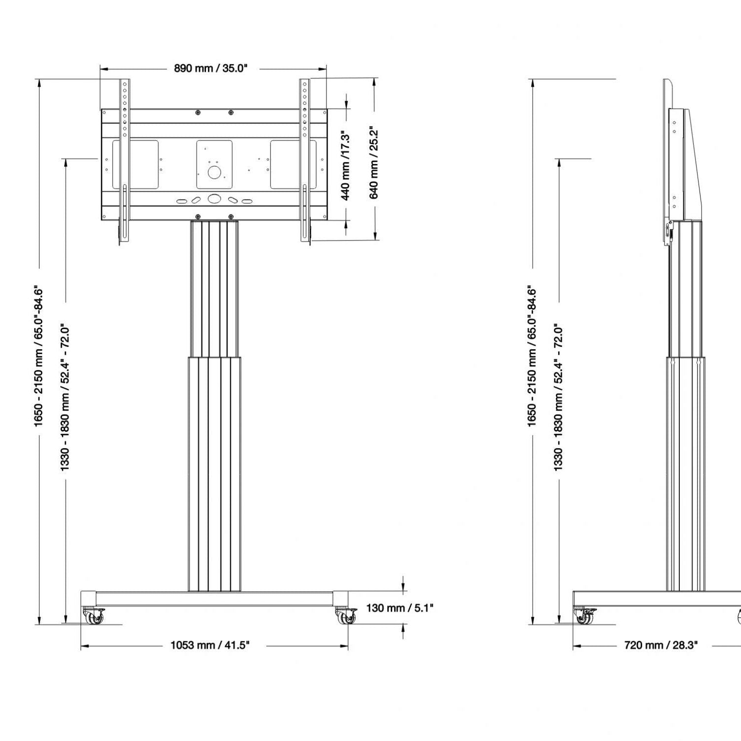- Height: Adjustable from 1650 mm to 2150 mm (65" - 84.6")