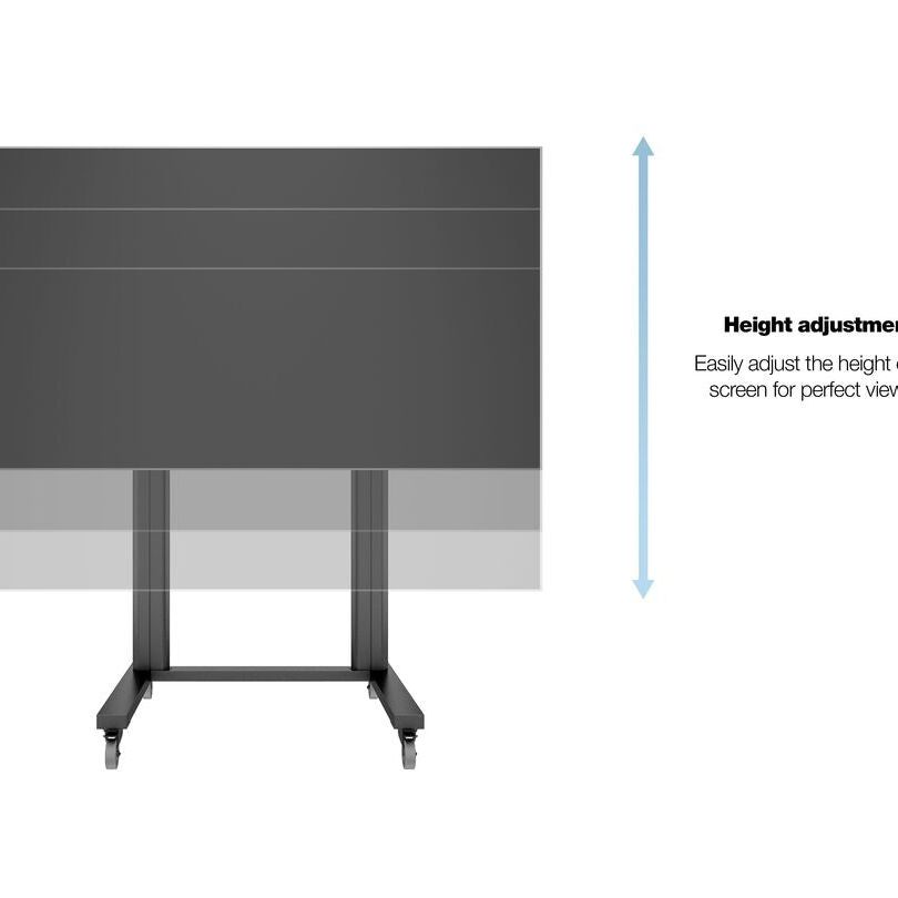 With its 180 centimeter height it is a perfect match for that Large Screen display in boardrooms, training rooms, lobbies, classrooms, auditoriums, or exhibit halls. With a built in 220V Power rail it is easy to connect screen and other accessories without creating a mess. Multibrackets also provides a line-up of accessories offering functionality to meet your requirements.Different shelves, CPU holders, Cable hooks, Camera holders and Brochure holders are just some of the accessories you can equip the M Display Stand 180Dual Pillar Wheelbase with.